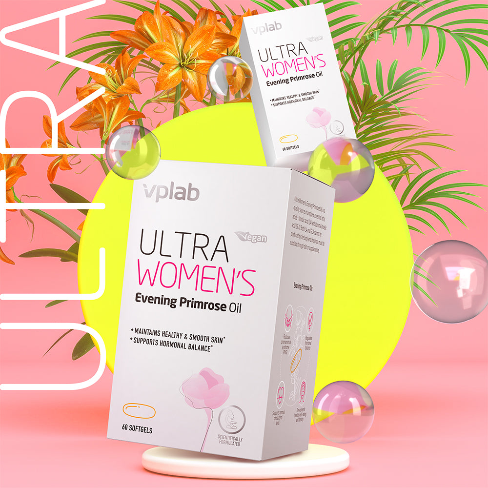 Vplab's ULTRA WOMEN’S EVENING PRIMROSE OIL is a comprehensive health supplement designed specifically for women. Each softgel contains 1000 mg of cold-pressed evening primrose oil, a rich source of Omega-6 and Omega-9 fatty acids, supporting hormonal balance, healthy skin, and metabolism regulation.